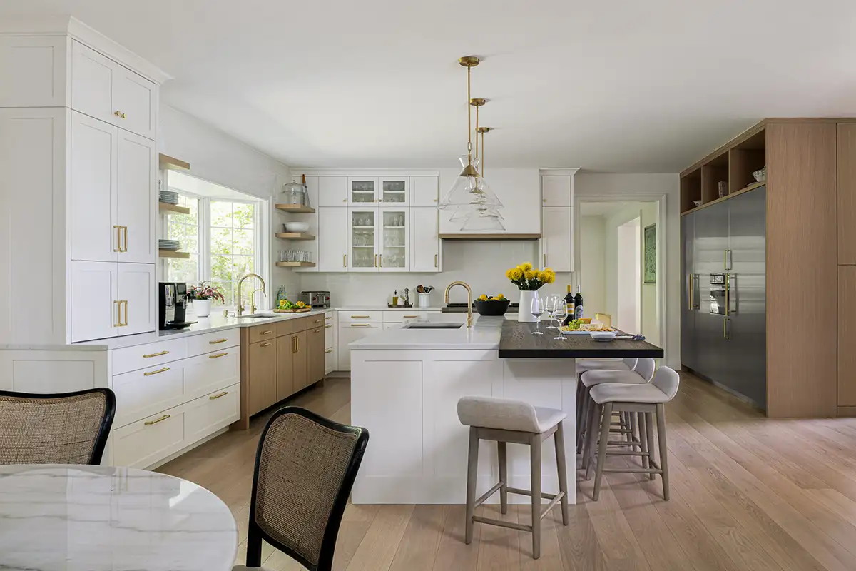“This unique counter is the perfect place to pull up a stool and enjoy this beautiful new kitchen,” adds Gilmer.